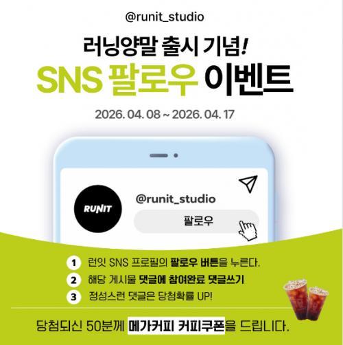 [런잇 ] 런잇 인스타 개설 SNS 팔로우 경품이벤트!! 50
