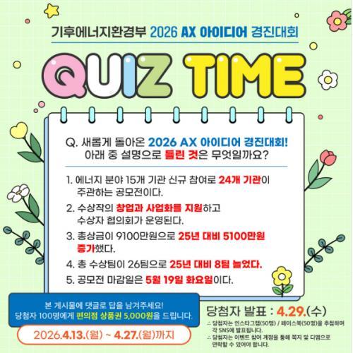 [026 AX 아이디어 경..] 기후에너지환경부 2026 AX 아이디어 경진대회 이벤트!! 100