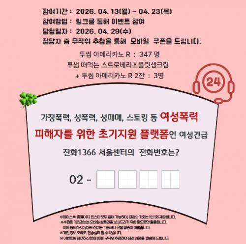 [여성긴급전화1336] 여성긴급전화1366 서울센터 빈칸 퀴즈 이벤트!! 350