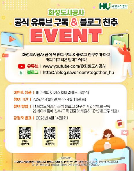 [화성도시공사] 화성도시공사 공식 유튜브 구독&블로그 친추 이벤트!! 80