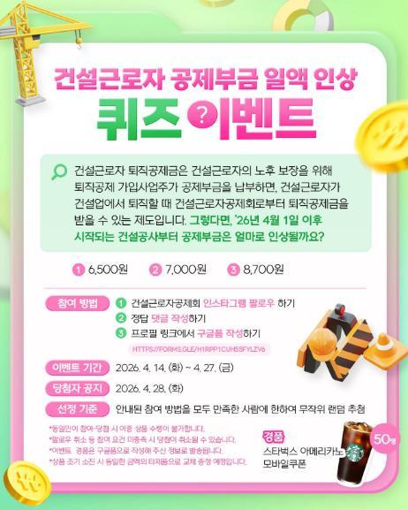 [건설근로자공제회] 건설근로자 공제부금 일액 인상 퀴즈 이벤트!! 50