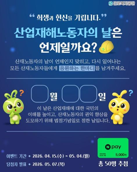 [근로복지공단] 산업재해노동자의 날은 언제일까요? 이벤트!! 50