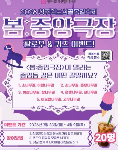 [청주원도심골목길..] 2026 청주원도심골목길축제 팔로우 & 퀴즈 이벤트!! 20