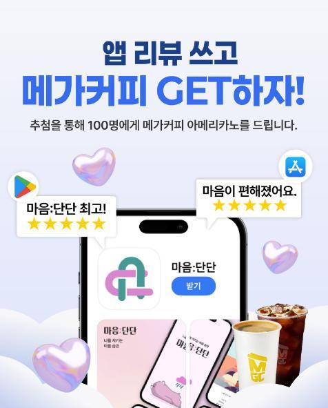 [마음단단] 앱 리뷰 쓰고, 메가 커피 GET하자 경품이벤트!! 100