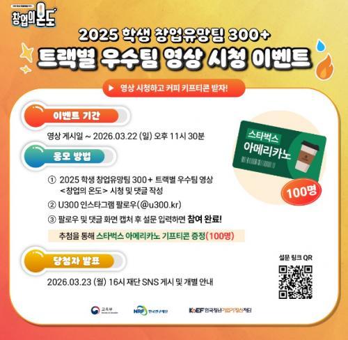 [2025 학생 창업유망..] 2025 학생 창업유망팀 300 우수사례 인터뷰 이벤트!! 100