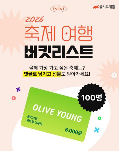 [몽키트래블] 축제 여행 버킷리스트 댓글 경품이벤트!! 100