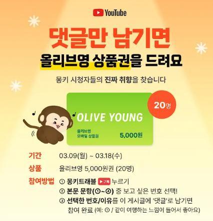 유튜브 플랫폼에서 진행하는 경품이벤트 메뉴만 제공하는 페이지를 새롭게 만들었습니다. 메뉴는 상단 오른쪽에 위치해 있습니다!