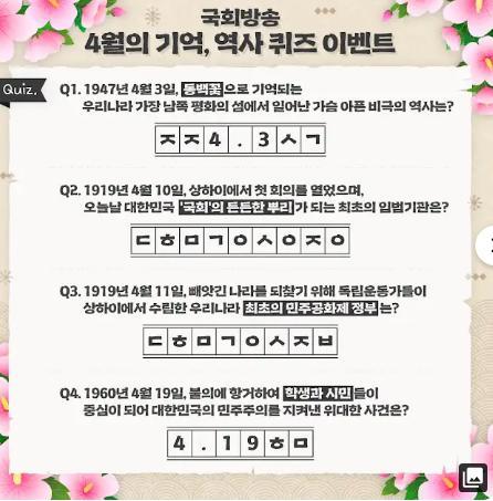[국회방송] 국회방송 4월의 기억, 역사 퀴즈 경품이벤트!! 100