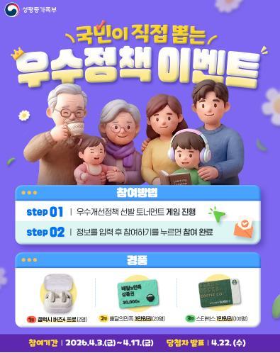 [성평등가족부] 국민이 직접뽑는 우수정책 경품이벤트!! 122