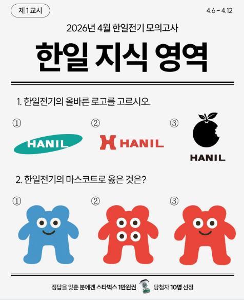 [한일전기] 2026년 4월 한일전기 모의고사 경품이벤트!! 10