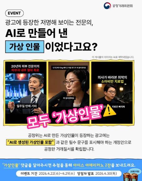 [공정거래위원회] 공정위의 AI 콘텐츠 ‘가상인물’ 표기 의무화 편 이벤트!! 20