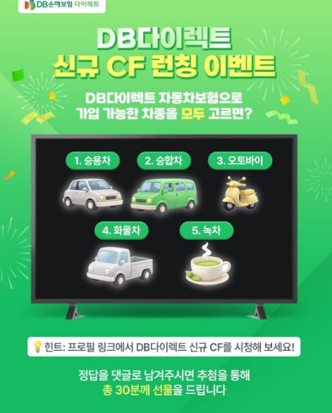 [DB손해보험 다이렉..] DB다이렉트 자동차보험 신규 CF 런칭 이벤트!! 30