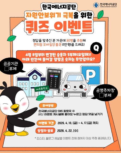 [한국에너지공단] 자원안보위기 극복을 위한 퀴즈 경품이벤트!! 30