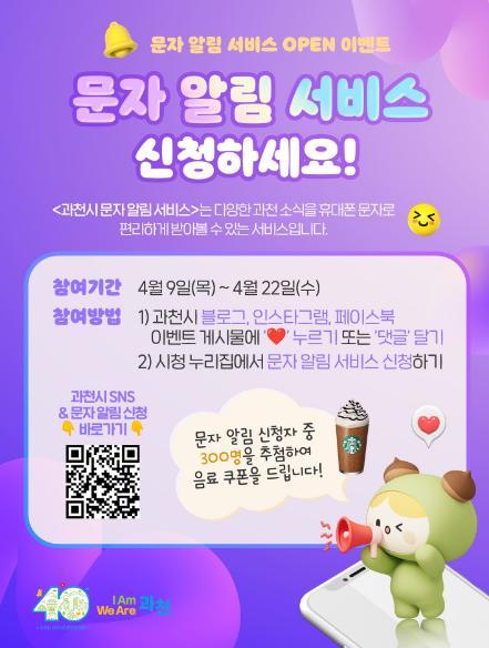 [과천시] 과천시 문자 알림 서비스 OPEN 경품이벤트!! 300