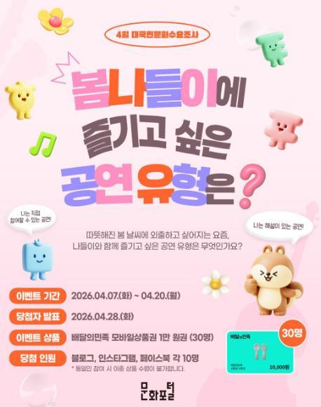 [문화포털] 봄나들이에 보고 싶은 공연 유형은? 이벤트!! 30