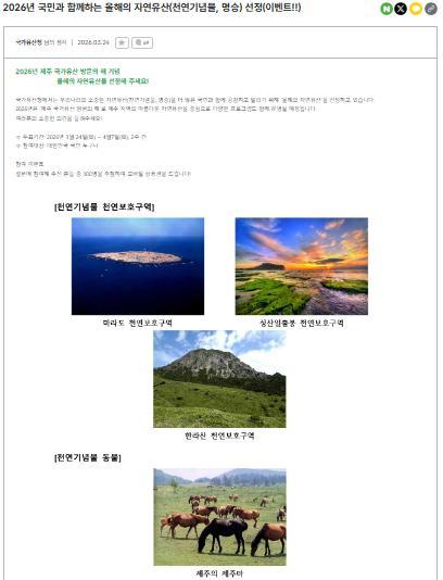 [국가유산청] 국민과 함께하는 올해의 자연유산 선정 이벤트!! 100