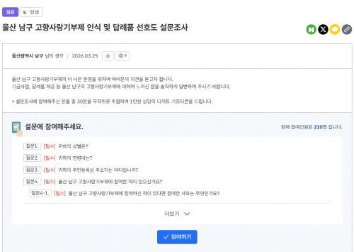 [울산광역시 남구] 울산 남구 고향사랑기부제 인식 및 답례품 선호도 설문 이벤트!! 30