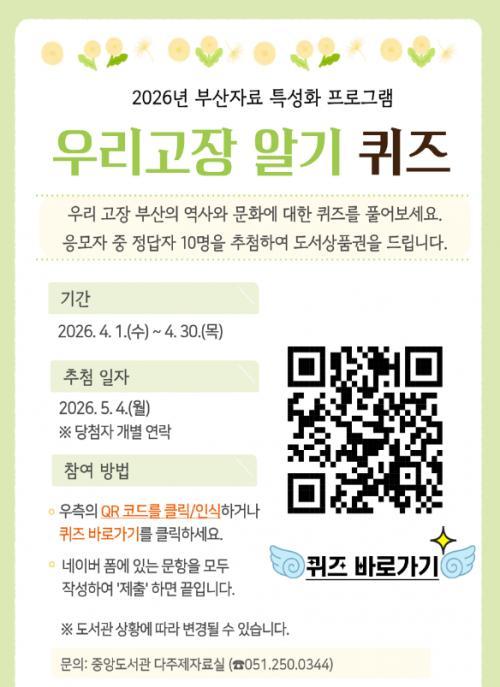 [부산광역시립중앙..] 부산자료 특성화 프로그램 우리고장알기 퀴즈 이벤트!! 10