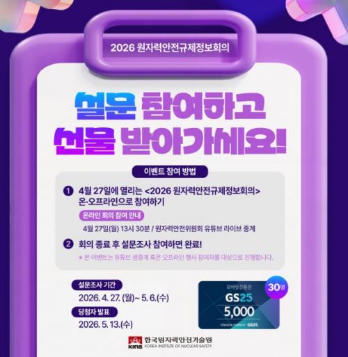 [한국원자력안전기..] 2026 원자력안전규제정보회의 설문 참여 이벤트!! 30
