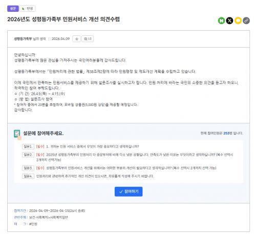 [성평등가족부] 성평등가족부 민원서비스 개선 의견수렴 이벤트!! 20