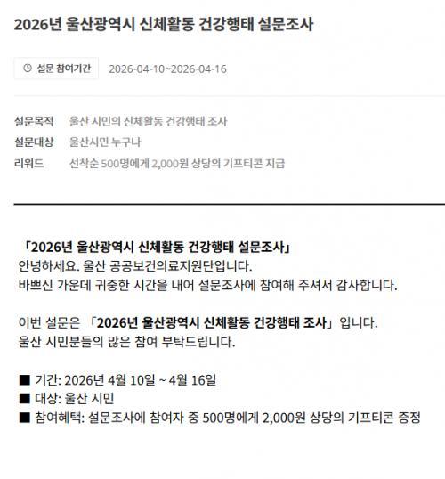[울팸] 울산광역시 신체활동 건강행태 설문조사 이벤트!! 500
