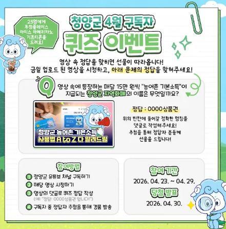 [청양군] 청양군 4월 구독자 퀴즈 경품이벤트!! 25