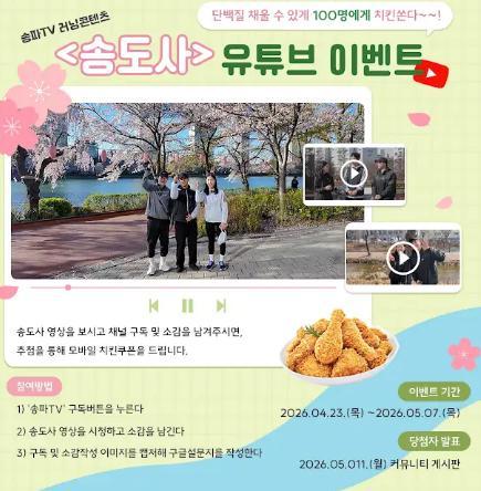 [서울특별시 송파구..] 송파TV<송도사> 유튜브 경품이벤트!! 100