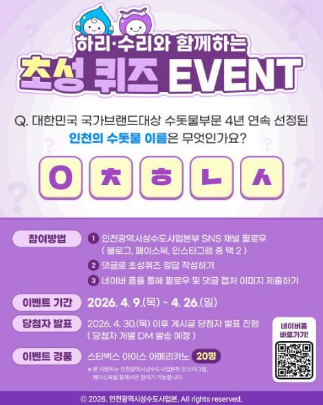 [인천하늘수] 하리와 수리와 함께하는 초성 퀴즈 이벤트!! 10