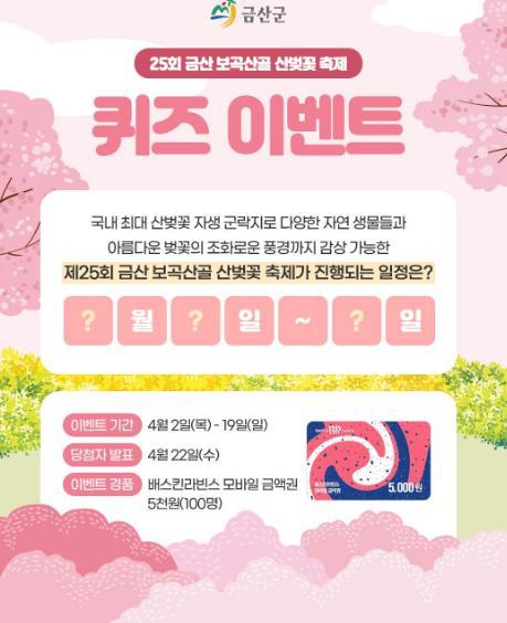 [금산군] 제25회 금산 보곡산골 산벚꽃 축제 이벤트!! 100