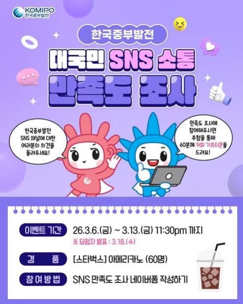 [한국중부발전] 한국중부발전 SNS 채널 만족도 조사 이벤트!! 60
