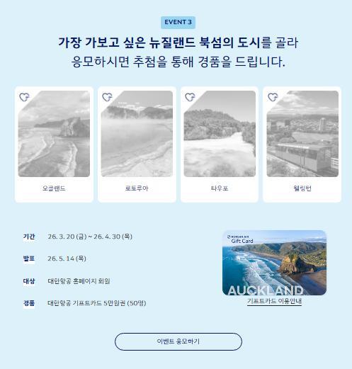 [대한항공] 가장 가보고 싶은 뉴질랜드 북섬의 도시는? 이벤트!! 50