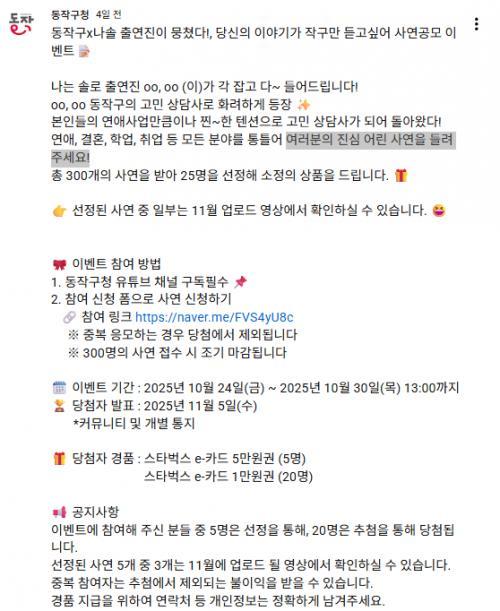 [서울특별시 동작구..] 여러분의 진심 어린 사연을 들려주세요 이벤트!! 25