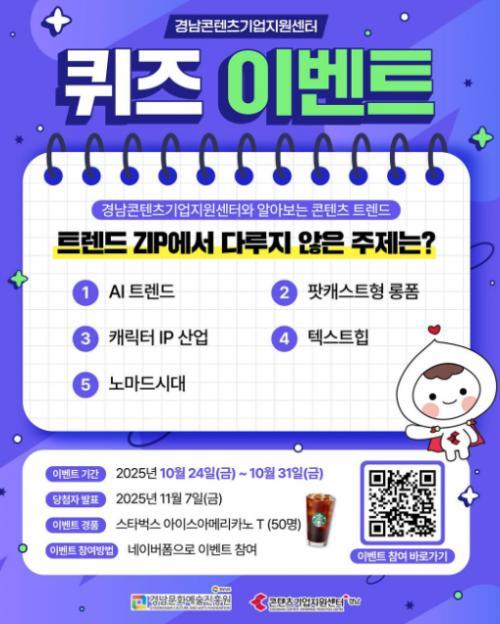 [경남콘텐츠기업지..] 경남콘텐츠기업지원센터 인스타그램 퀴즈 이벤트!! 50