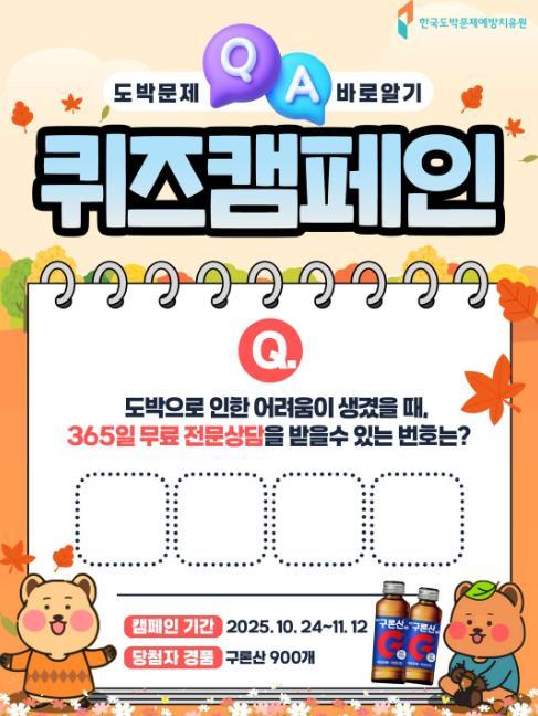 [한국도박문제예방..] 도박문제 바로알기 퀴즈캠페인 경품이벤트!! 900