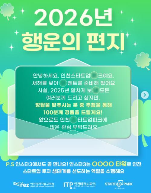[인천 스타트업파크..] 2026년 행운의 편지 경품이벤트!! 100