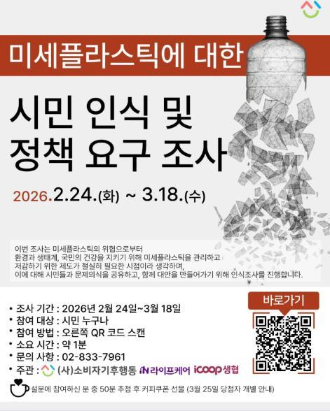 [소비자기후행동] 미세플라스틱에 대한 시민 인식 및 정책 설문 이벤트!! 50