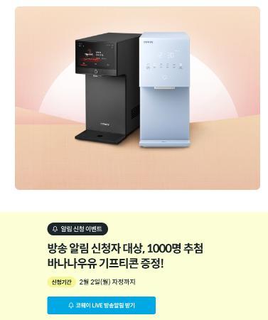 [코웨이] 코웨이 방송 알림 신청 경품이벤트!! 1000