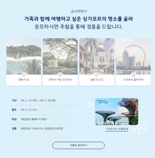 [대한항공] 가족과 함께 여행하고 싶은 싱가포르 명소는? 이벤트!! 200