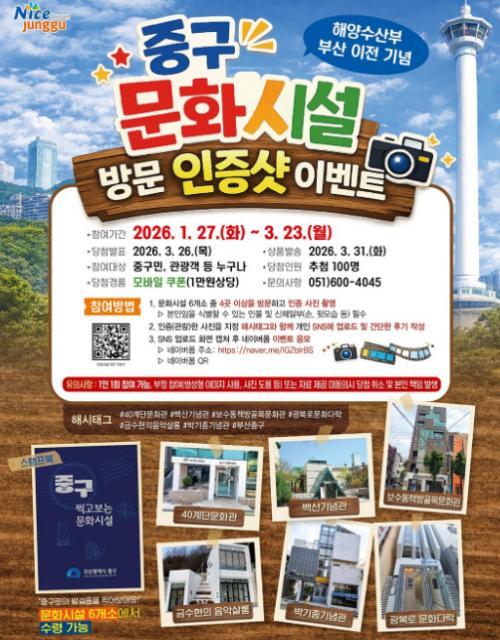 [부산광역시 중구] 중구 문화시설 방문 인증샷 경품이벤트!! 100