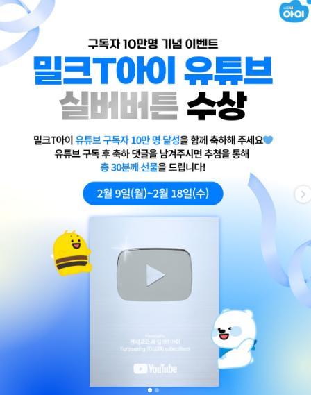 [밀크T아이 ] 밀크T아이 실버버튼 달성 기념 댓글 이벤트!! 30