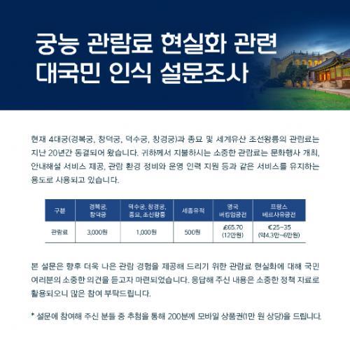 [국가유산청] 궁능 관람료 현실화 관련 대국민 인식 설문 이벤트!! 200