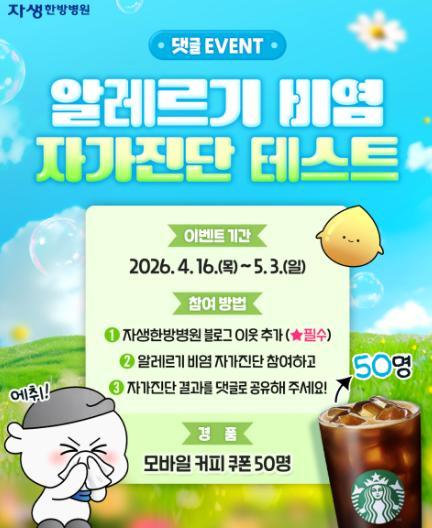 [자생한방병원] 알레르기 비염 자가진단 테스트 경품이벤트!! 50