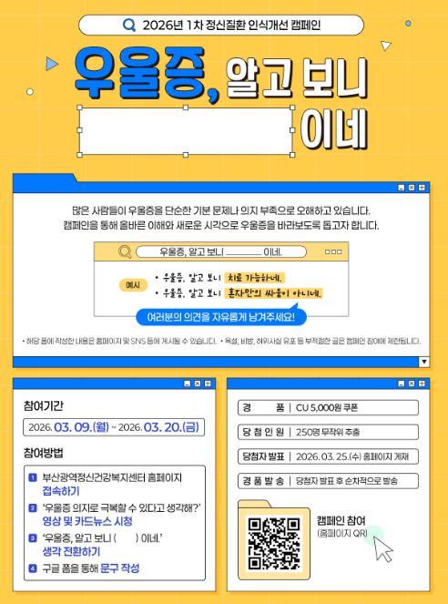 [부산광역정신건강..] 2026년 1차 정신질환 인식개선 캠페인 이벤트!! 250