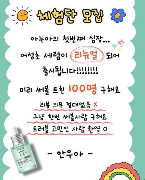 [아누아] 아누아 어성초세럼 리뉴얼 체험단 이벤트!! 100