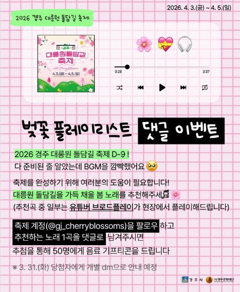 [경주 대릉원돌담길..] 벚꽃 플레이리스트 댓글 경품이벤트!! 50