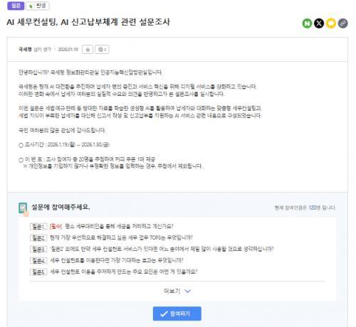 [국세청] AI 세무컨설팅, AI 신고납부체계 관련 설문 이벤트!! 20