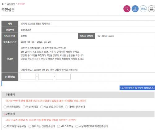 [서울특별시 서초구..] 소식지 2026년 3월호 독자퀴즈 경품이벤트!! 26