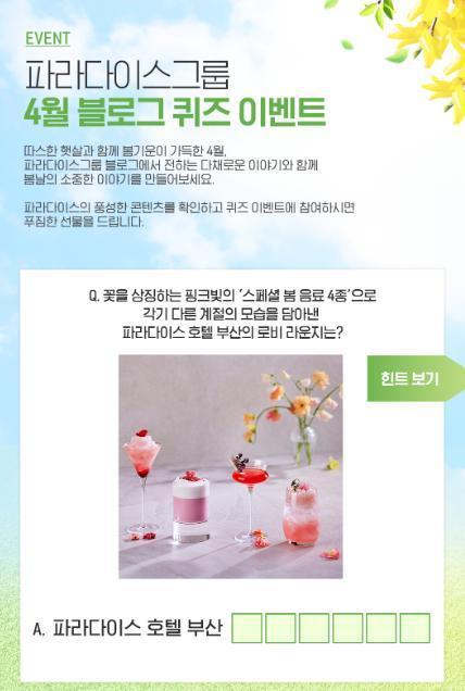 [파라다이스그룹] 파라다이스그룹 4월 블로그 5차 퀴즈 이벤트!! 5