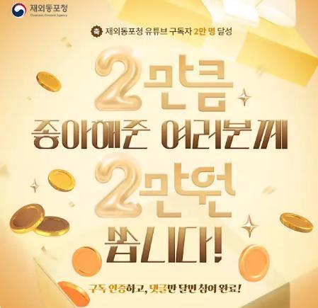 [재외동포청] 재외동포청 유튜브 채널 구독자 2만 명 달성 이벤트!! 50
