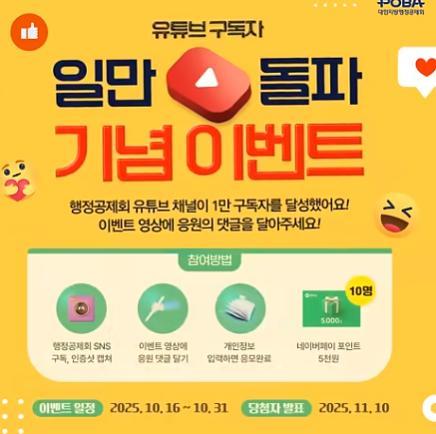 [행정공제회] 유튜브 구독자 1만 돌파 기념 경품이벤트!! 10